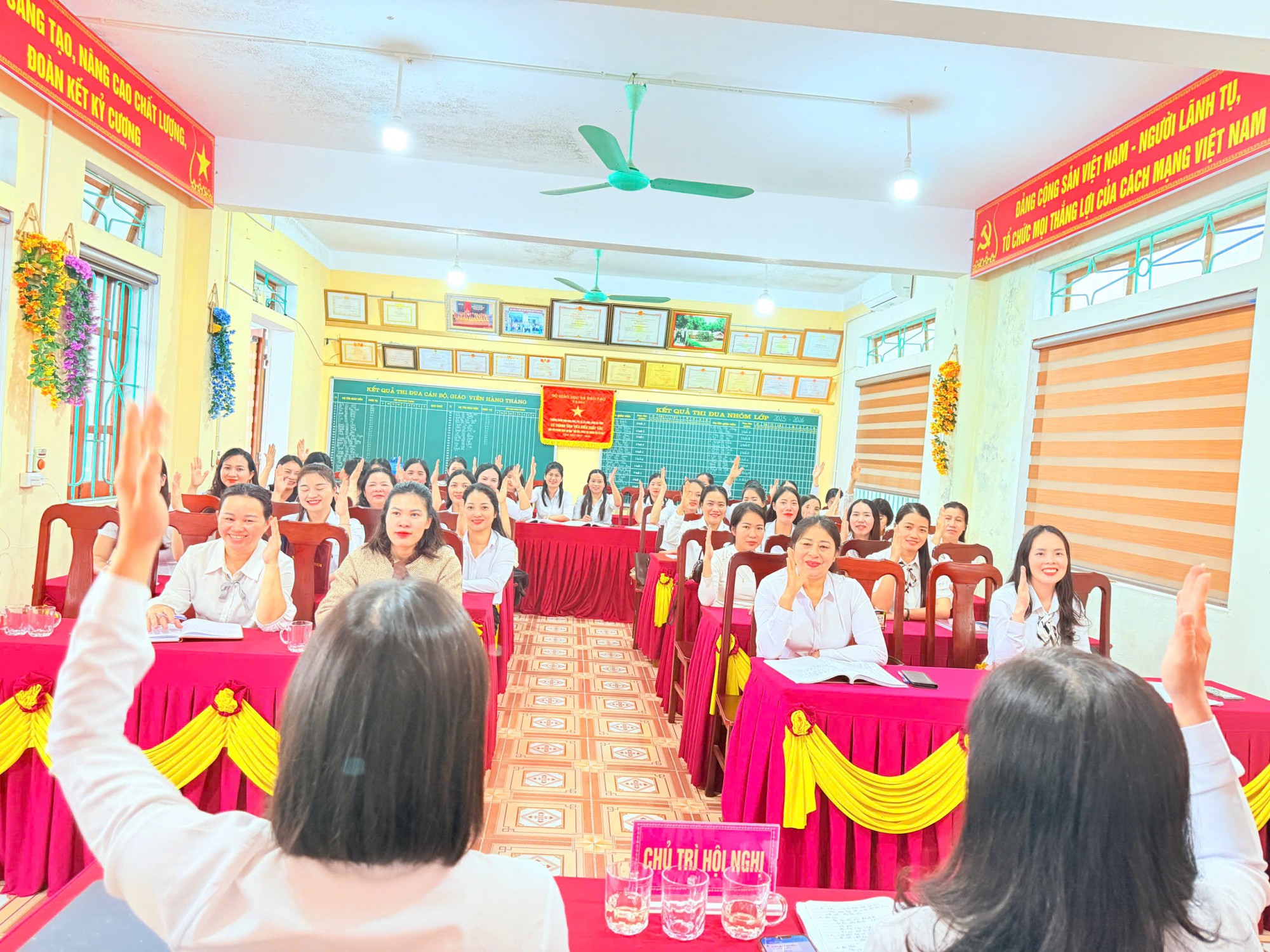 Đồng chí Nguyễn Thị Thơm Thông qua Nghi quyết hội nghị Hội nghị công tác xây dựng Đảng năm 2025 của Chi bộ Trường Mầm non Hoa Mai đã diễn ra thành công tốt đẹp, thống nhất cao về nhận thức và hành động. Đây là cơ sở quan trọng để Chi bộ tiếp tục phát huy vai trò hạt nhân lãnh đạo, xây dựng Chi bộ trong sạch, vững mạnh, góp phần nâng cao chất lượng giáo dục mầm non và thực hiện thắng lợi nhiệm vụ chính trị được giao. MỘT SÓ HÌNH ẢNH HỘI NGHỊ TỔNG KẾT