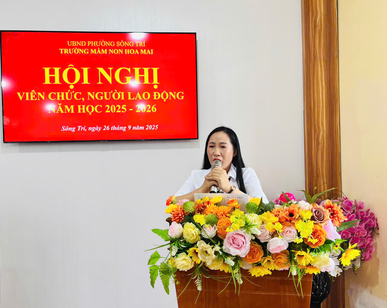 Thực hiện Công văn số 2850/SGDĐT ngày 10/9/2025 của Sở Giáo dục và Đào tạo Hà Tĩnh về việc hướng dẫn tổ chức Hội nghị cán bộ, công chức, viên chức, người lao động năm học 2025 - 2026, chiều ngày 26/9/2025. Trường Mầm non Hoa Mai đã long trọng tổ chức Hội nghị viên chức, người lao động năm học 2025- 2026.