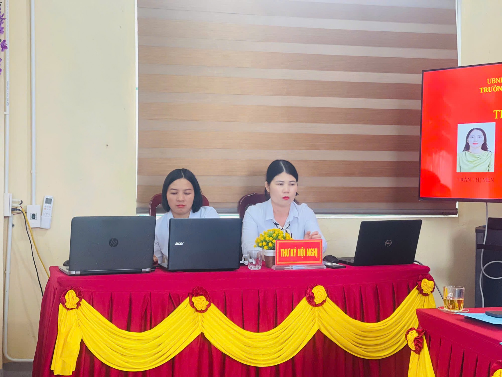 Đ/c Lê Thị Thắm; Phó Bí thư - Phó Hiệu trưởng thông qua báo cáo tổng kết năm học 2024- 2025 và phương hướng nhiệm vụ năm học 2025 - 2026